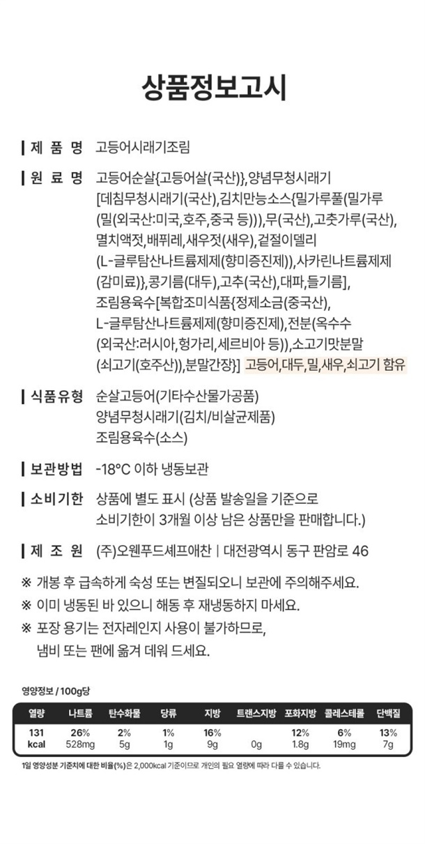 (순살고등어 + 양념무청시래기 + 조림용육수)