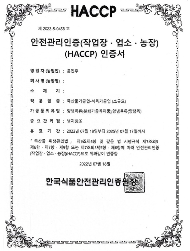 해썹인증 진공포장
