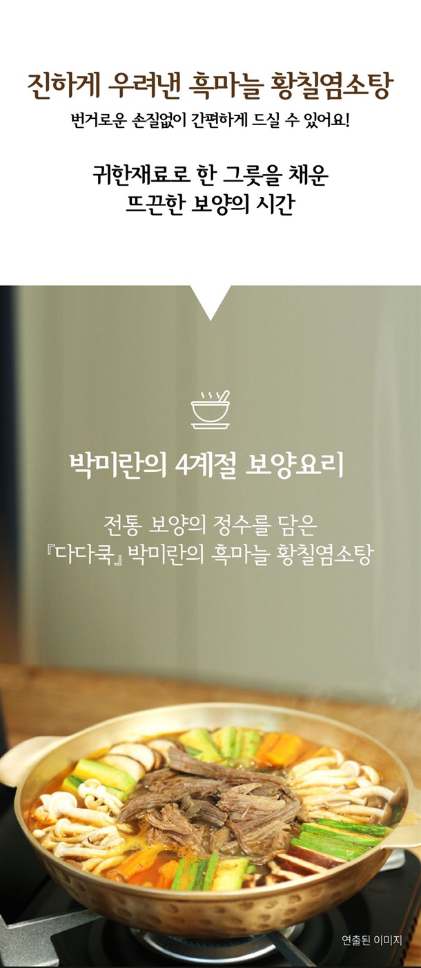 ✔흑마늘즙과 황칠진액으로 보양은 더하고 맛은 더욱깊게~