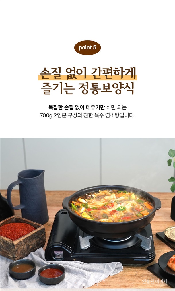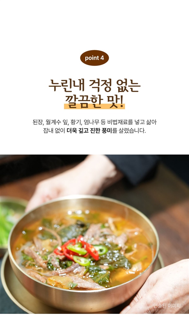 ✔소양지육수에 된장, 황기, 엄나무, 월계수 등을 넣어 잡내없이 깔끔하게~