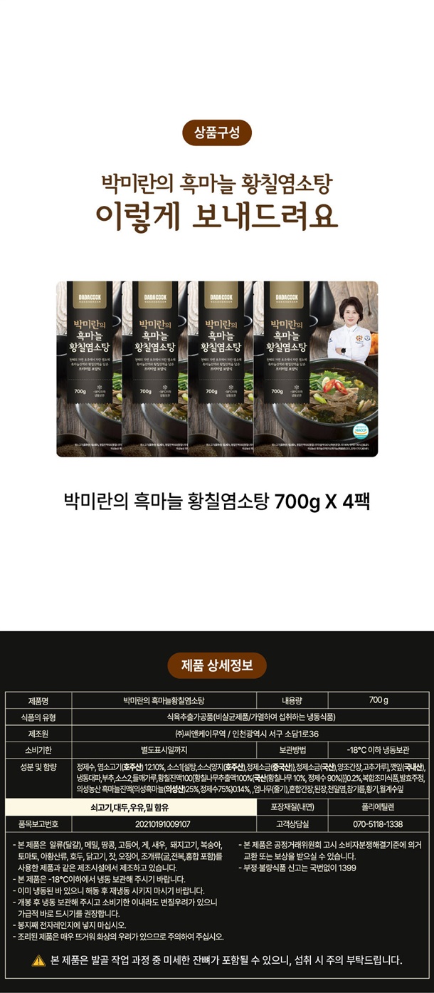 1. 박미란의 흑마늘황칠염소탕 700g 3팩
