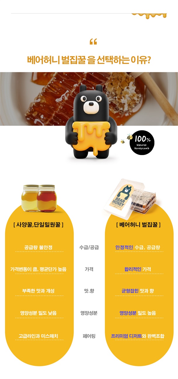 진짜 꿀 맛의 기준, 베어허니 벌집 꿀!!