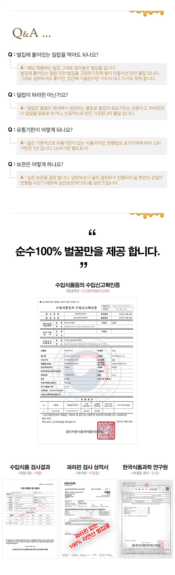 ✔️ 100% 천연 벌집꿀