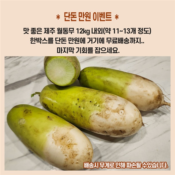 * 제주 월동무는 간혹 배송중에 부러짐이 생길