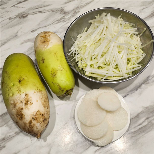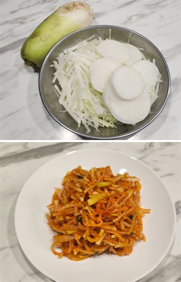 채썰어 무채도 무쳐 먹고