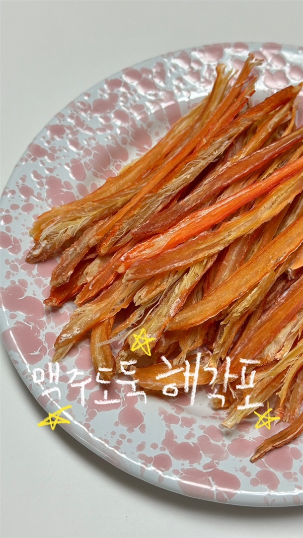 자꾸 자꾸 손이 가는 중독성있는 홍게 해각포!! 먹을수록 빠져들고 씹으면 씹을수록 대게의 풍미가 진하게 느껴지는 별미중의 별미!! 국내산 홍게 다리살을 발라서 말린 해각포 입니다~ 너무 맛있어서 먹다보면 그냥순삭!! 맥주안주로 최고입니다.