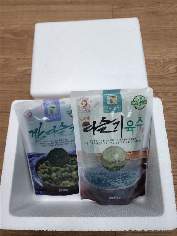 | 1. 포장단위별 용량(중량), 수량, 크기 | 가마솥 육수 350g / 깐다슬기 200g |