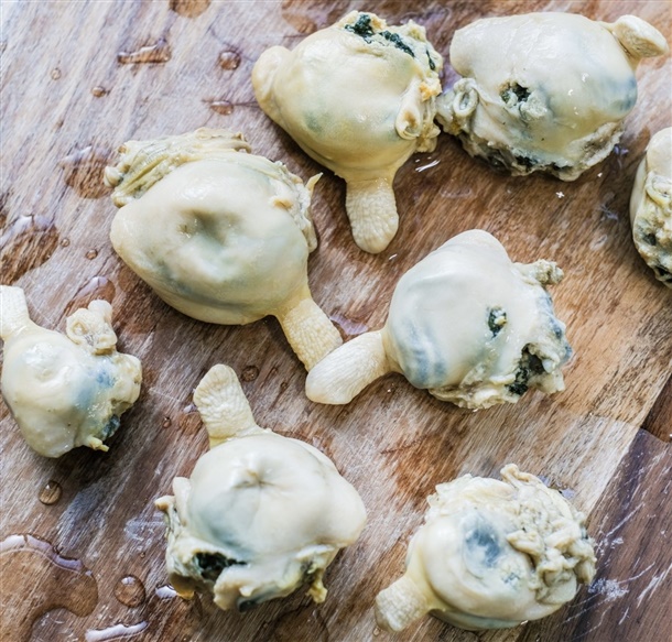 3. 속살을 다시 건져 내장만 따로 가위 등을 이용하여 분리 후 5분 더 데쳐준 후 찬물에 세척합니다.