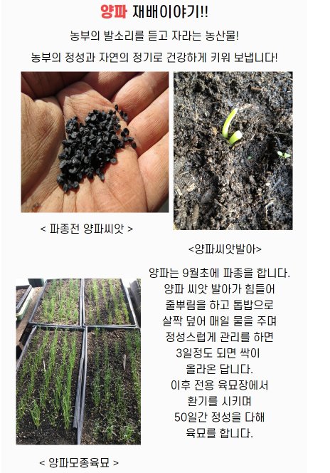 | 4. 제조연월일(포장일 또는 생산연도), 유통기한 또는 품질유지기한 | 저장양파, 신선식품 특성상 별도의 유통기한은 없으나 빠른 섭취를 권장드립니다. |