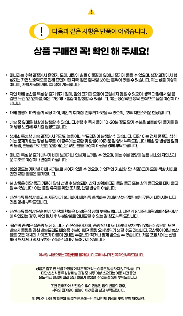 · 일부 상품에 대해서 교환/반품 정책이 위와 상이할 수 있습니다.