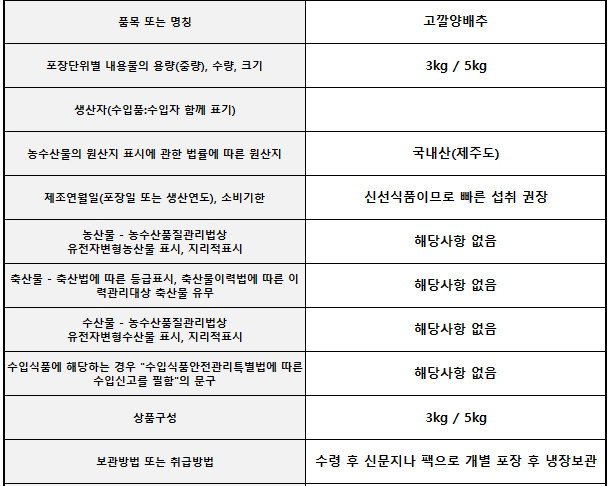 | 4. 제조연월일(포장일 또는 생산연도), 유통기한 또는 품질유지기한 | 상시수확, 신선식품 특성상 별도의 유통기한은 없으나 빠른 섭취를 권장드립니다. |