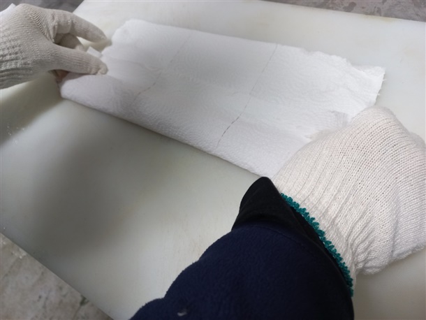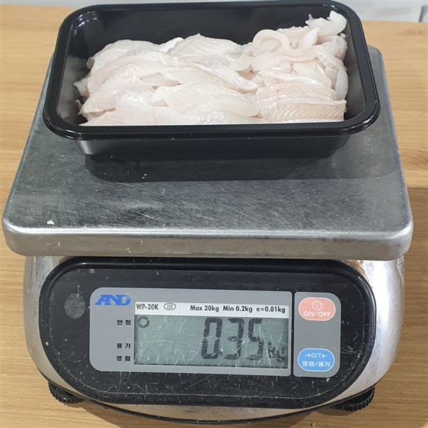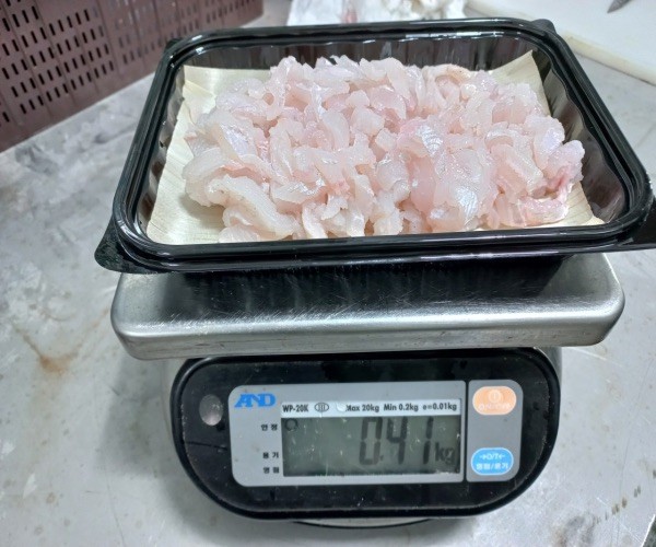 손질된 아나고회는 트레이에 중량맞춰 담아, 빙장포장하여 발송됩니다.