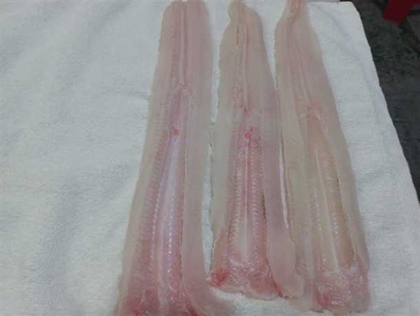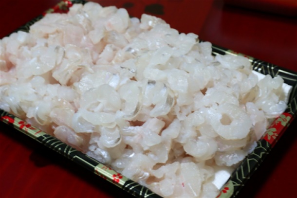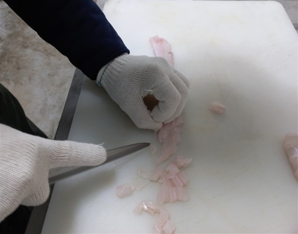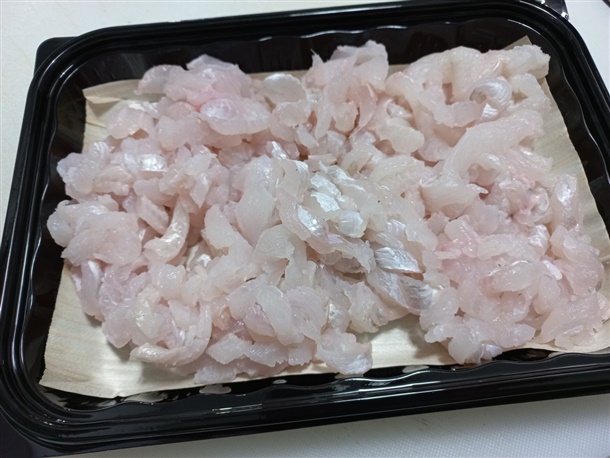 통영 산지에서 자연산 바다장어 원물 1kg를 뼈제거 및 지느러미제거 후 수작업으로 회작업을 한 통영 지역먹거리 순살 하모회입니다.